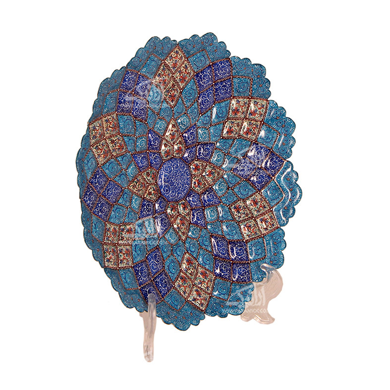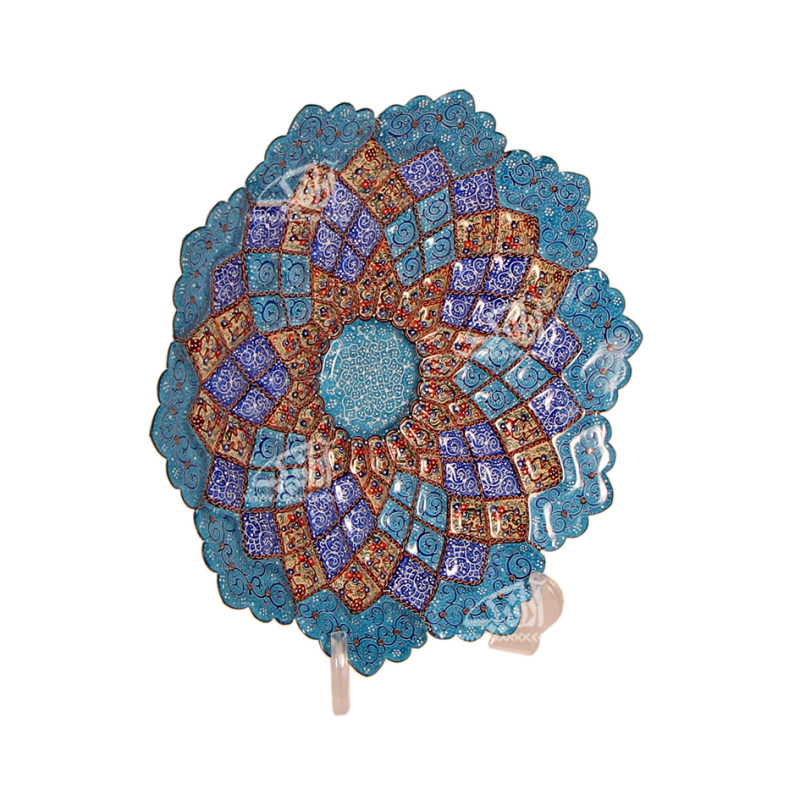 سابقه این هنر به دوران ساسانیان می رسد. مینا ماده ای زجاجی است که بر اثر ذوب شدن روی سطح اشیای فلزی، جلوهای شفاف، شبیه به کاشی لعابدار پیدا می کند. هنر میناکاری به روشهای مختلفی انجام می شود که این اثر مینای نقاشی می باشد. در مینای نقاشی لعاب سفید رنگ را که با صمغ و گلیسرین مخلوط می شود را به عنوان بوم کار روی فلز مس زده و و داخل کوره قرار می دهند. مس مورد نظر باید خالص باشد تا روی لعاب تاثیر نگذارد. بعد از این مرحله به وسیله لعاب مینای نقاشی طرح مورد نظر را روی بوم نقاشی میکنند و دوباره در کوره قرار می دهند تا لعاب به درجه پخت برسد. این نوع میناکاری امروزه در اصفهان و شهرهای اطراف آن بسیار پر رونق است.
